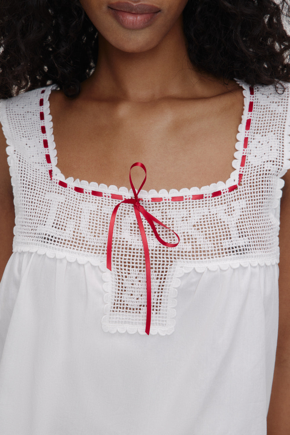 - Custom crochet detailing with rose motifs