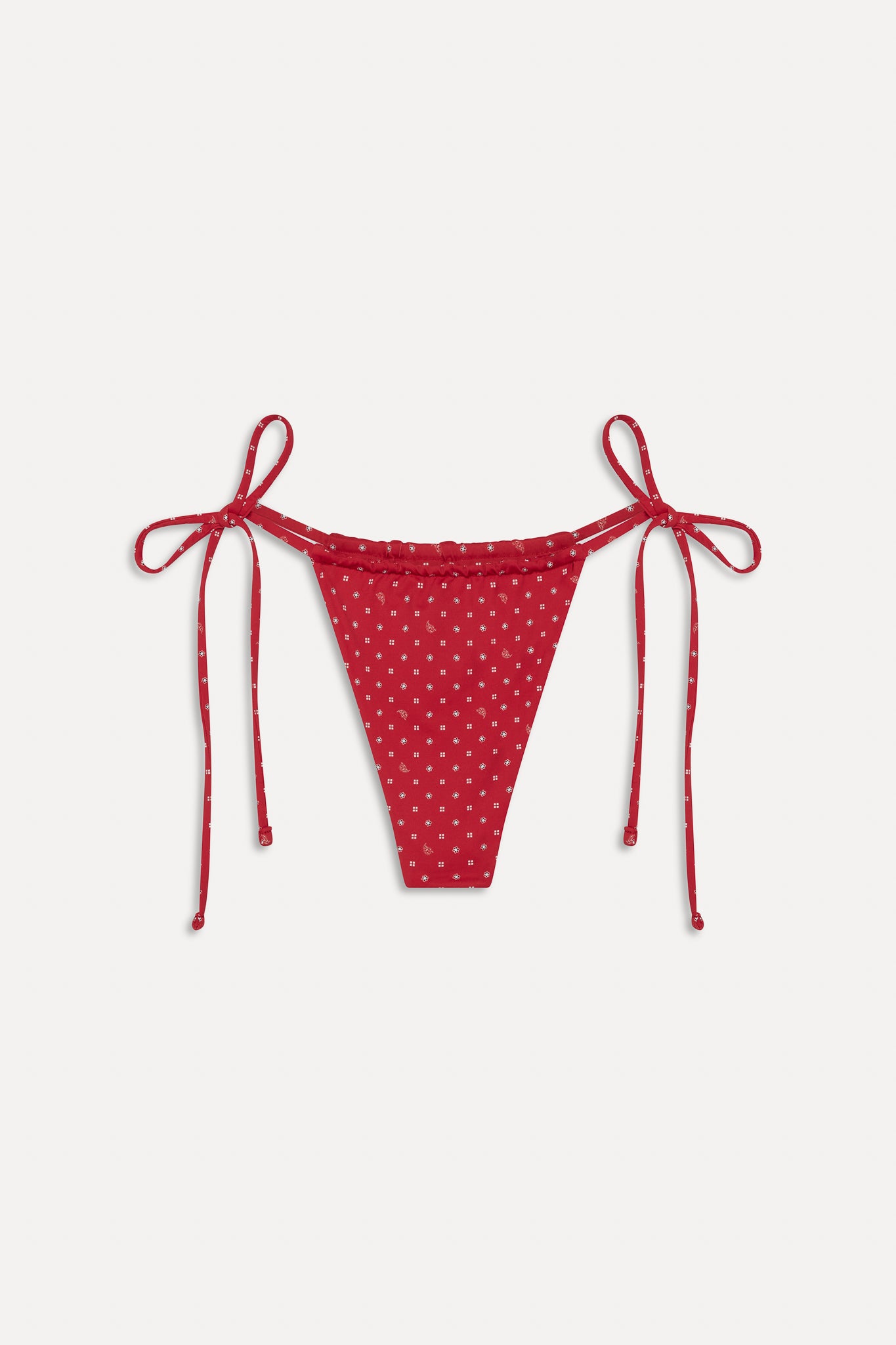 Sexy and slimming with a flirty ruched detail and string side ties. the takes the ultimate skimpy silhouette to a new level. Exclusively from the Bella Hadid x Frankies Bikinis collaboration.