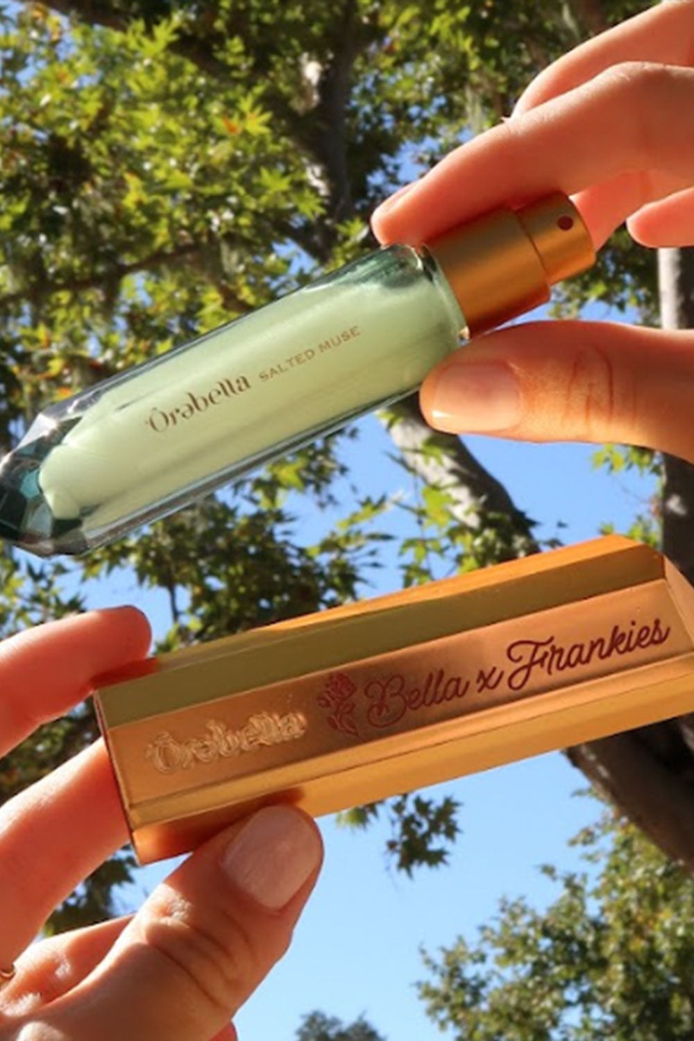 Where swim meets scent. This set comes with the SALTED MUSE 10mL travel spray and a bespoke gold Travel Case. engraved with the red script Bella x Frankies custom rose design. SALTED MUSE is a multi-faceted woody marine scent with key notes of sea salt. olive tree. and cedarwood that instantly transports you to crashing waves and sandy shores with subtly glowing skin.